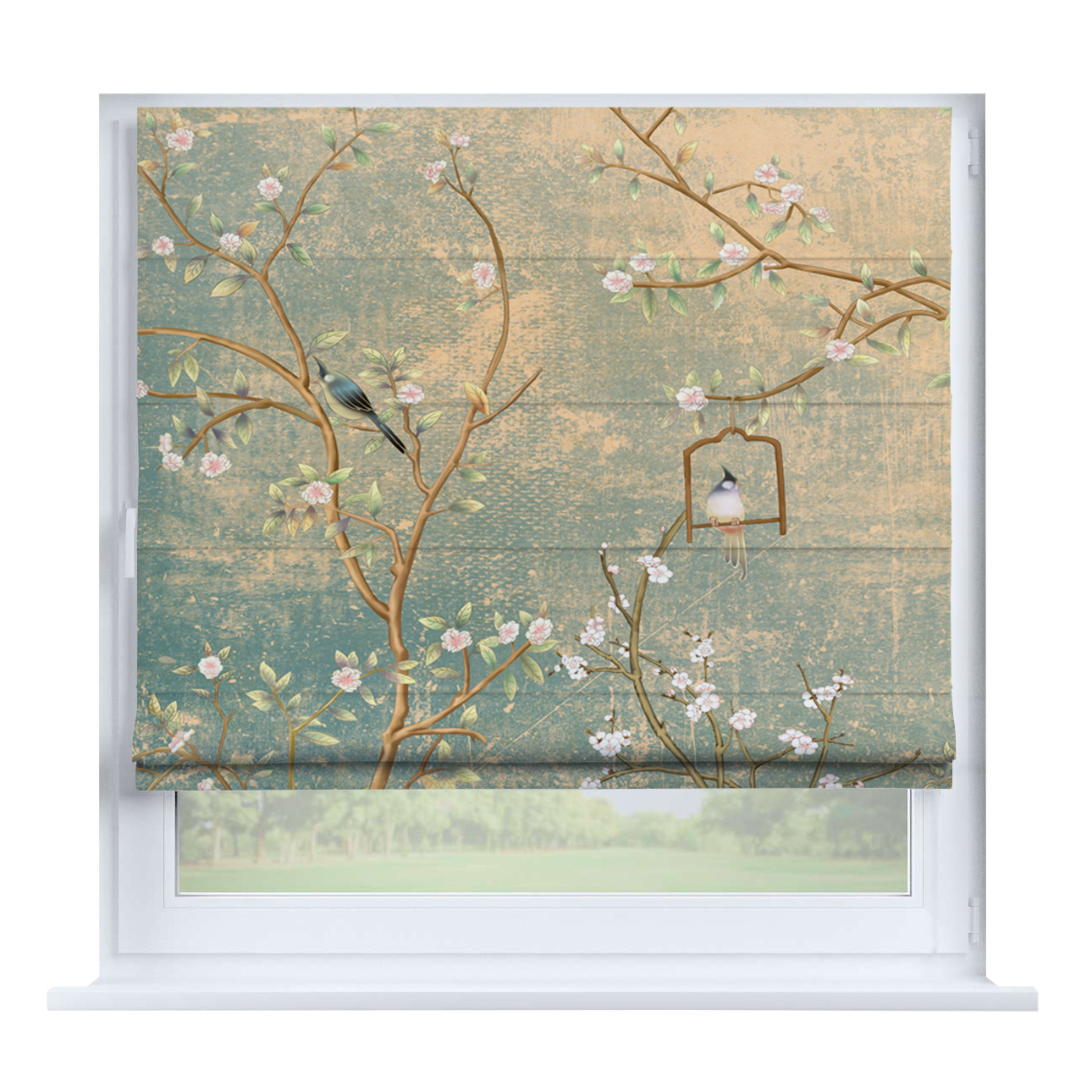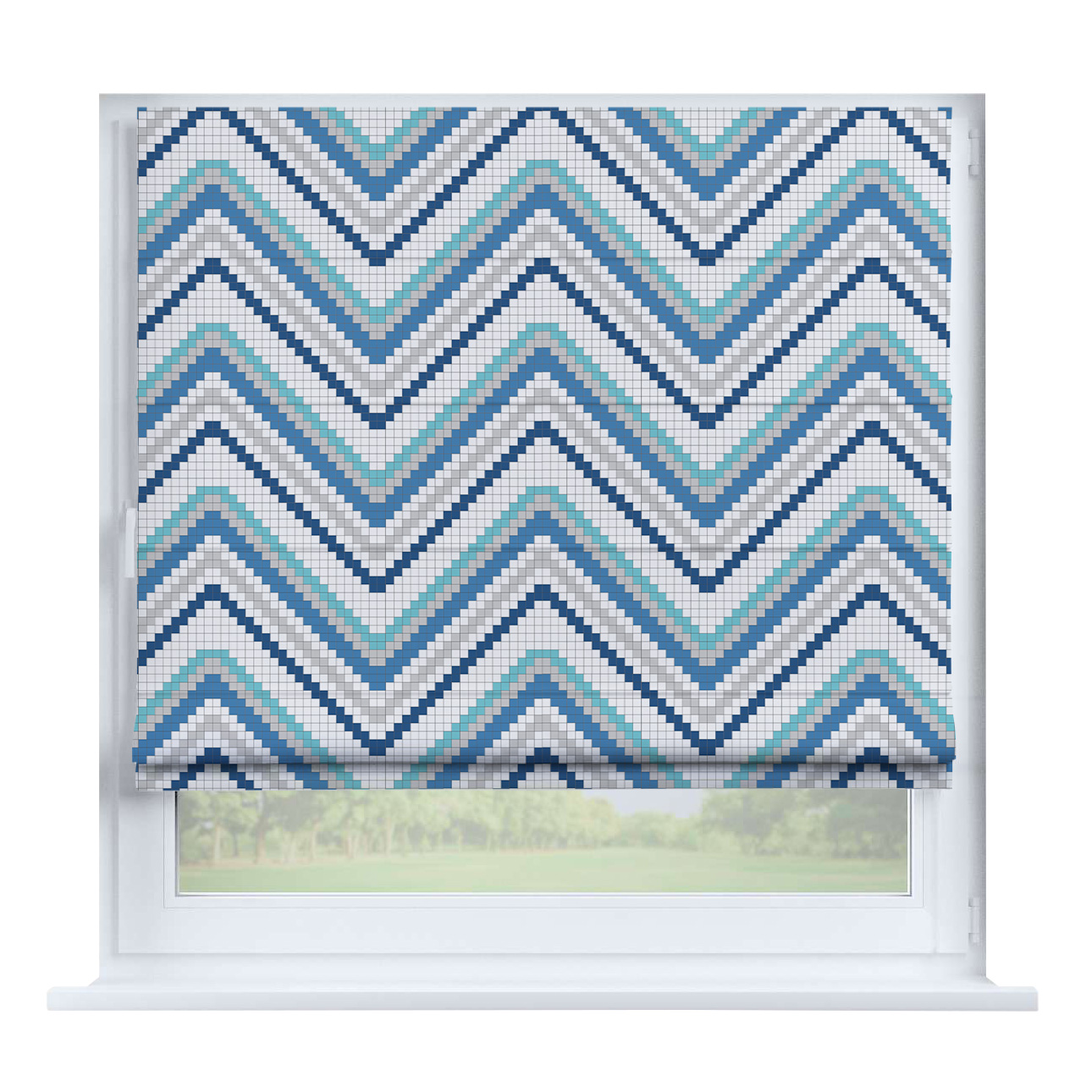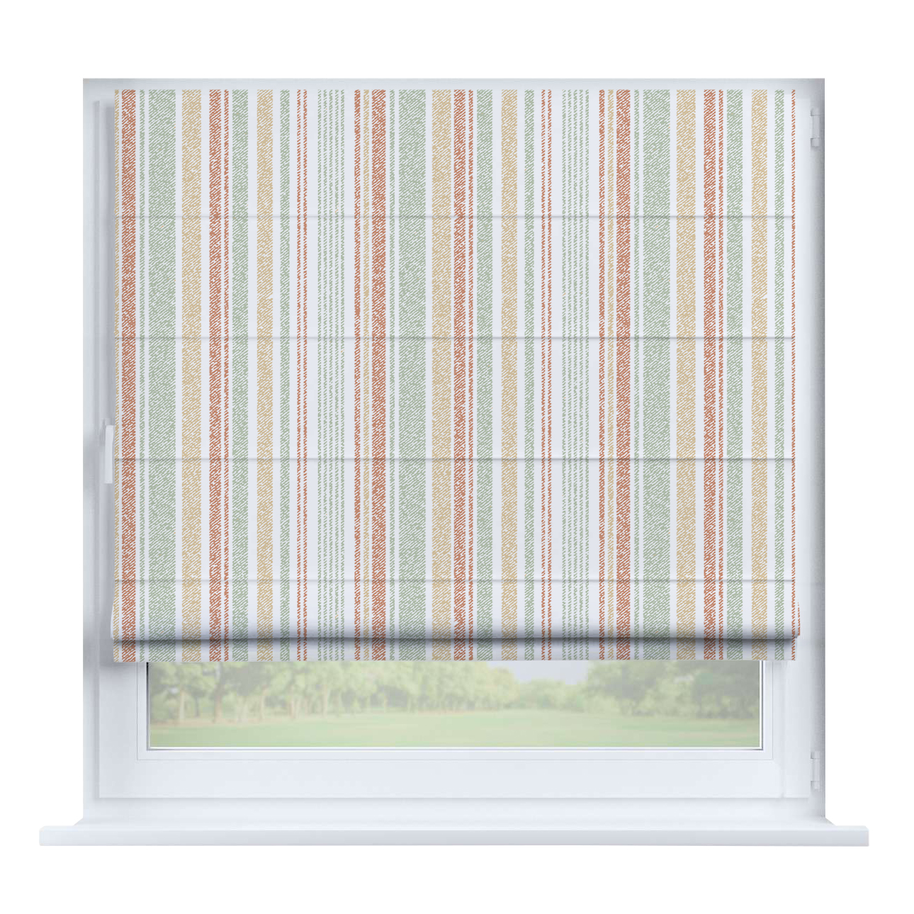 Римская штора для проёма «Лесистая местность», карниз верёвочный
