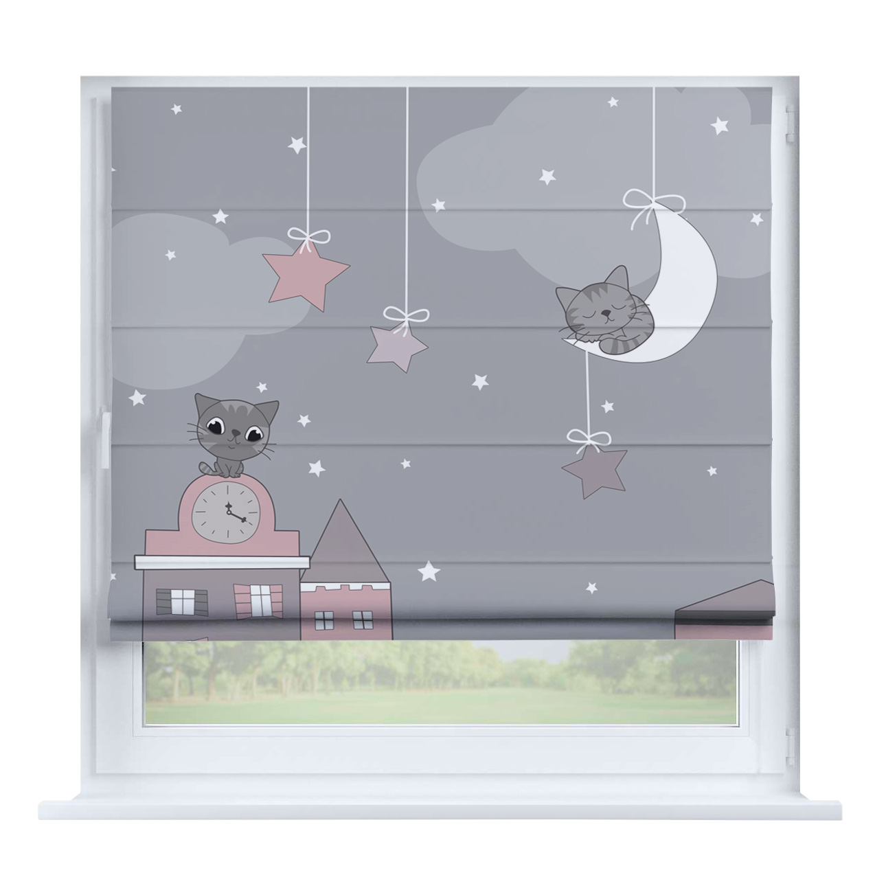 Римская штора для проёма «Скандинавский питомник», карниз верёвочный